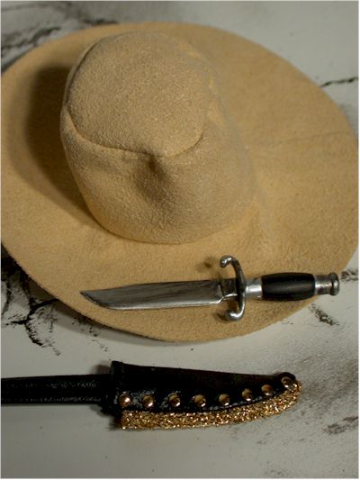 There is also the requisite Bowie knife and sheath. The sheath fits