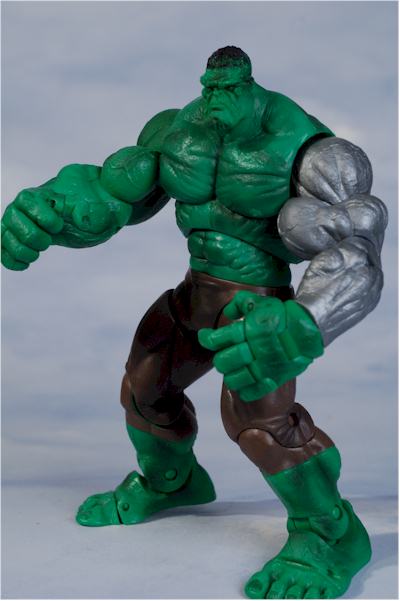 He comes with the head and collar for Annihilus, along with his battle shield, battle helmet, and shoulder armor. All three are removable, and with the running change from a silver left arm to a green one, you can take them off and have a 'normal' Hulk as well.