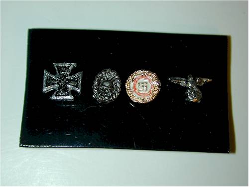 cast metal badges (WWI Iron Cross, Wound badge, and NASDP pin) and a Iron