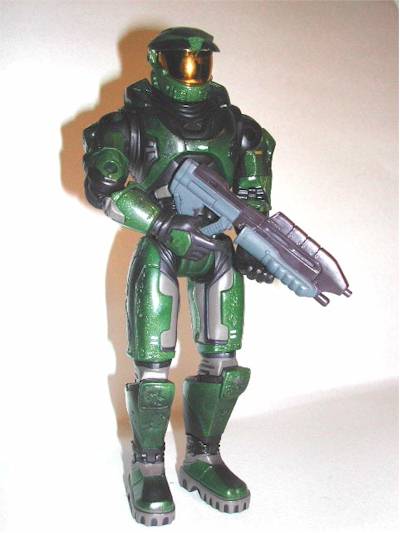 Again, there's deceptively little to comment on here. The Master Chief is molded in oddly gold-speckled green plastic, with the appropriate parts of armor painted black and gray. That's about it.