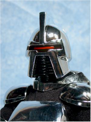 The Cylon has a great outfit, consisting of his black body stocking, a
