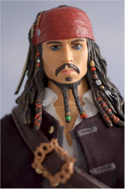 You can make Johnny Depp out in there someplace, and while it's a slightly genericized version of him, the accurate beard and hair help cement the likeness. The expression is very neutral, without much personality, but at least by going in this direction they avoid overdoing it.