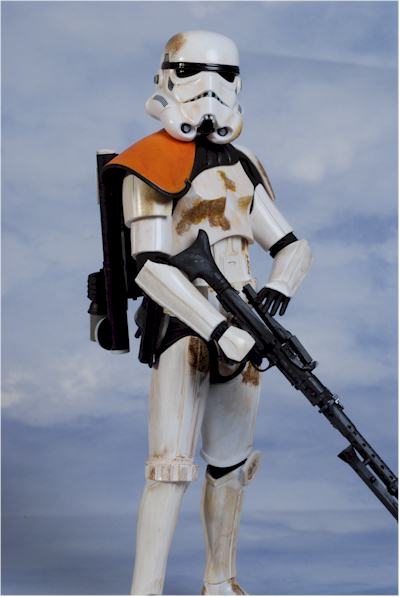 This is the one category where this trooper really differs from the previous - he's got some serious sand in his shorts. Paint has been used to simulate the kind of dirt and damage that would result from hanging out on a desert planet. For the most part, this works well, particularly above the waist. The hands could use a little more weathering, but it's a minor issue. On the flipside, the codpiece could probably use a little less weathering, but maybe it's like the Sandtrooper version of stuffing a sock down his pants. Hey, you plaster that much sand on your crotch, and everyone is going to be staring at it.