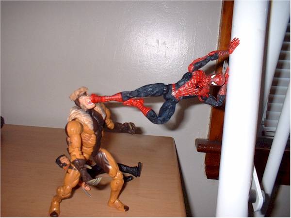 I'm not a big accessories nut, at least not with the Spider-Man lines. Spidey comes with a flagpole with a metal cylinder that, when you stick him to it, at the top of the pole, he swings around it on it's way down. Now to me, it just seemed like he was pole dancing. It went in my dresser drawer. Not bad over all though, because when put together, it's quite tall and it doesn't harm the figure.