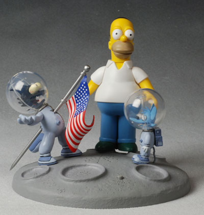 Both sets are very well sculpted, with an attention to detail that previous Simpsons figures haven't seen. Small touches like Homer's two strands of hair as separate pieces standing up on his head, the wrinkles in the pig's stomach where Homer is tickling him, or the pockmarked surface of the moon base are all great examples of the amount of detail even in such a simplistic animated design.