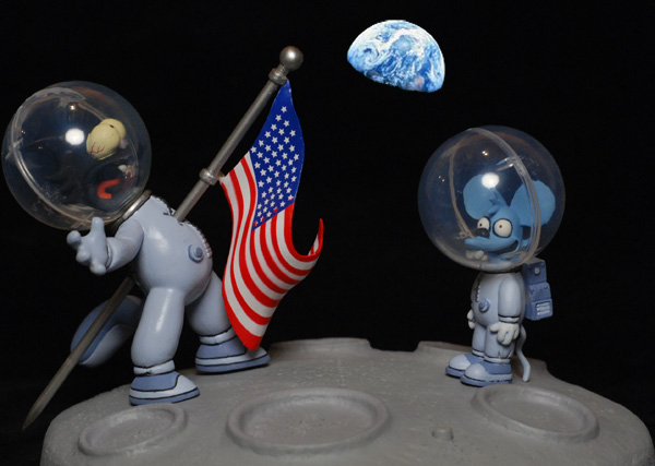 That means that the removable helmets on the cat and mouse, along with the American flag and moon base, are all accessories. And they're all well done, adding quite a bit to the overall look of the diorama.