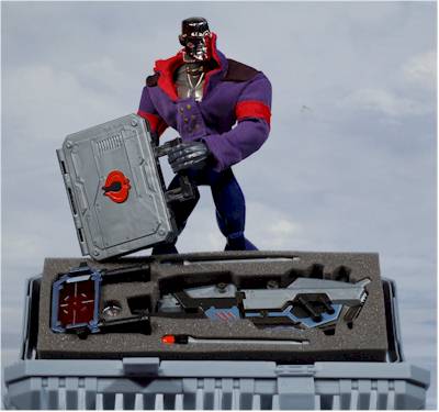 The hard shell top and bottom of the 'box' becomes Destro's footlocker. The foam padding holds his many accessories, and is a great way to store them AND works as an additional accessory to boot. This is one of the most creative packaging designs we've seen in years, and big props go to Hasbro for getting back to the basics of what makes toys fun even in when it comes to the box it comes in.