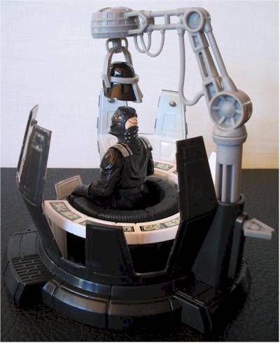 The special packaging on this figure is probably one of the simplest; most well-done I’ve seen from Hasbro in a while. The chamber is wire-tied to a trapezoidal cardboard base with the Imperial insignia and the 500th figure label in front. A hard clear plastic shell with the top of the meditation chamber painted on the outside covers the set. A slot in the back still allows MIB’ers to still play with the helmet crane. This is a pretty sturdy set and it’ll take some abuse without showing it.