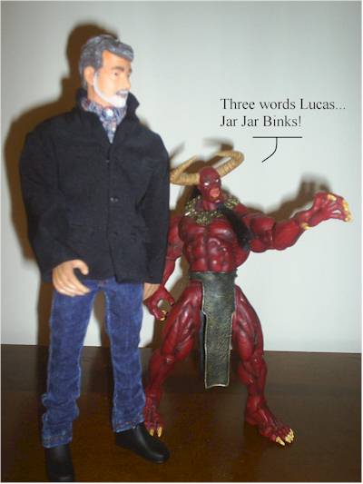 Now this is a bit sticky. I am basing the value score for this figure solely on what I paid for him. I got him off of eBay for $45 with shipping, which surprised the piss out of me. I was willing to pay a lot more for the figure, and I have seen him selling for as high as $120. At anything over about $70 I think the figure starts to lose a lot of points, and over $100 is pretty ridiculous for what you’re getting. But on the other hand… George Lucas directed frickin’ Star Wars!!! This is the only 1/6 scale figure of the man out there and I understand that only a few hundred were made! If you are a fan of Star Wars and have a lot of figures than you’ll probably be willing to drop some serious coin for this figure and I can honestly say you probably won’t be disappointed.