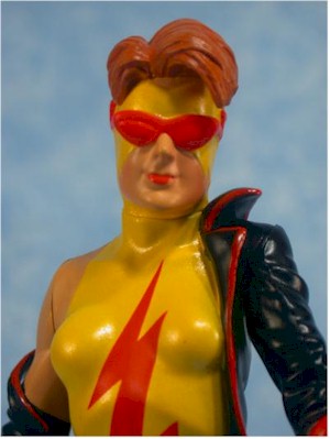 yellow of her cowl, the red of her mask, and the flesh color of her lower