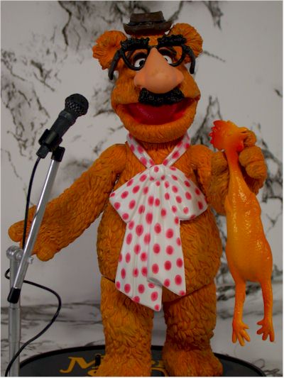 Fozzie has his rubber chicken, Groucho glasses, microphone and microphone