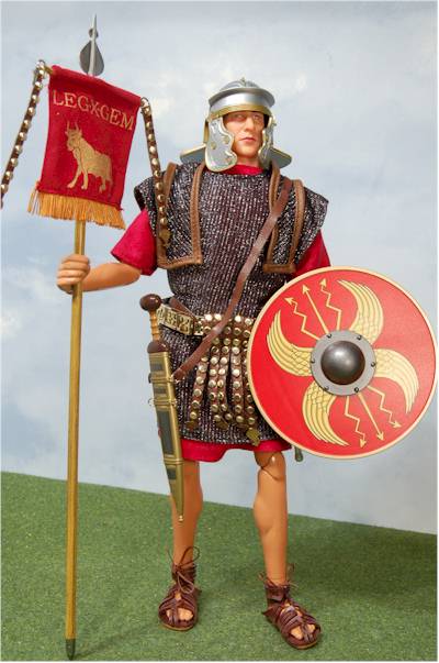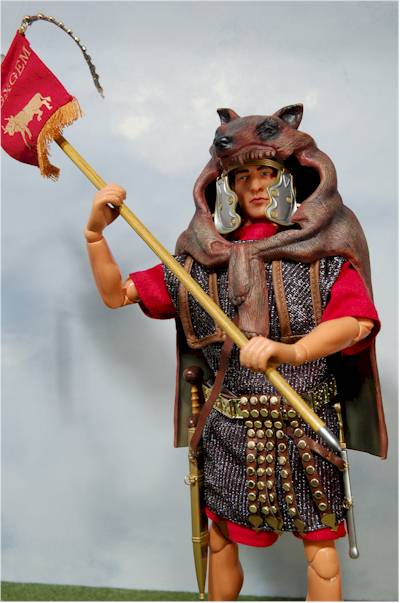 we've seen on other Roman soldiers), faux chain metal tunic, and red cloth