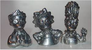 The pewter busts of each of the six suspects are done in character